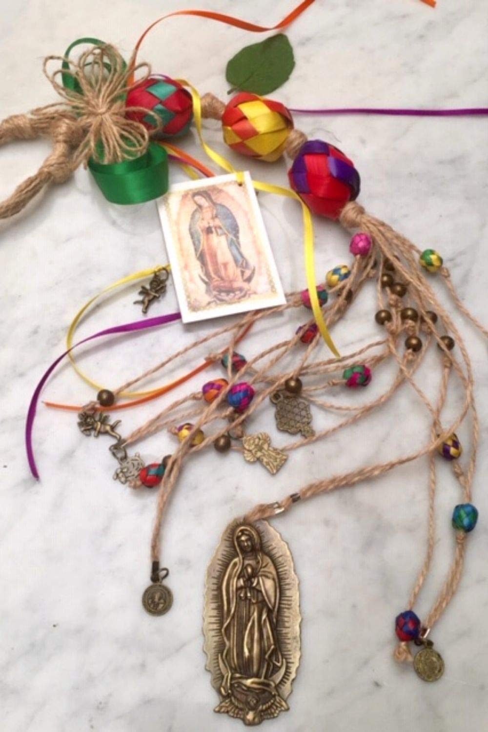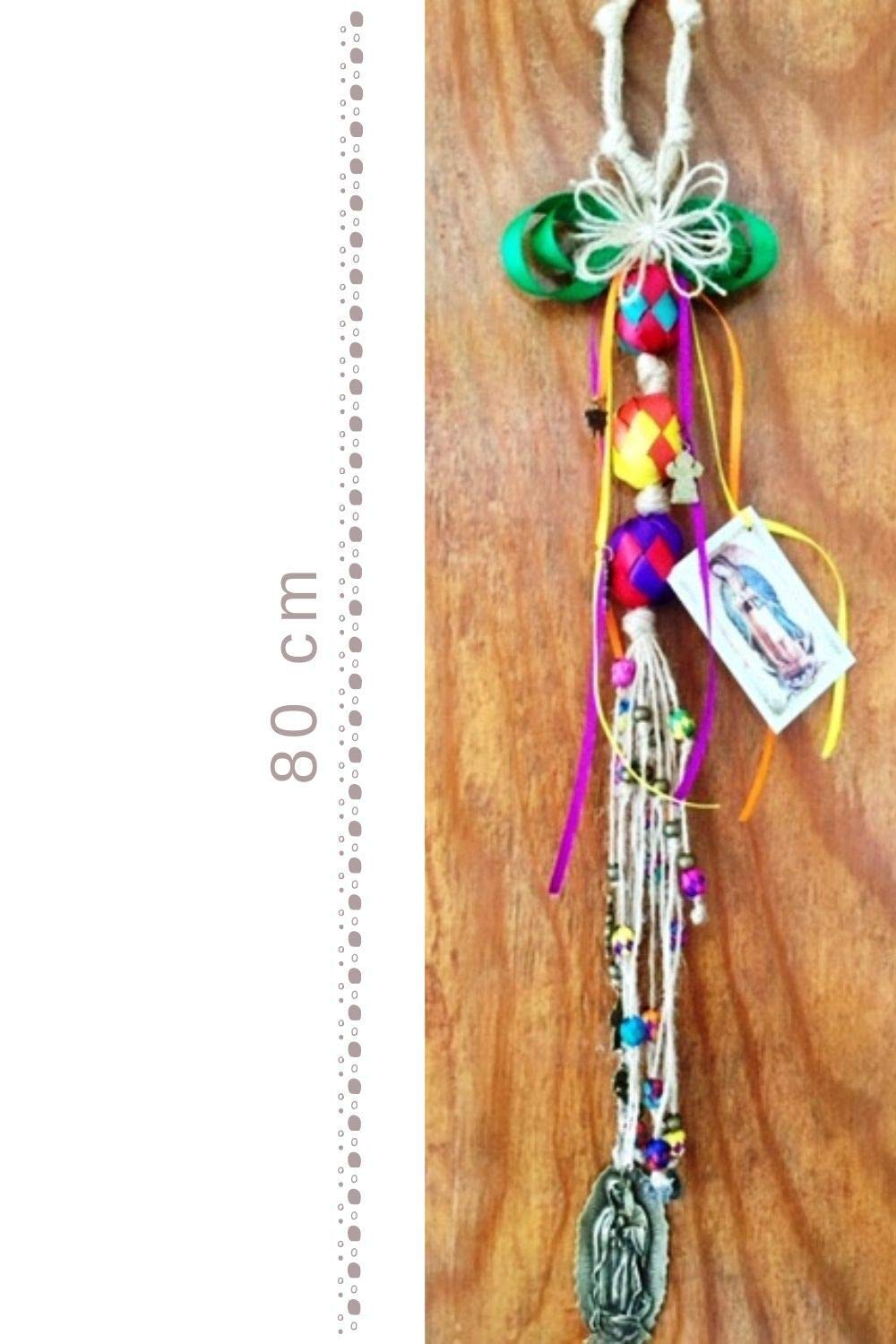 Bendición de la VIRGEN DE GUADALUPE, hecha a mano de cuentas de palma y yute para colgar en la puerta principal. BENDICIONES, PROTECCIÓN Y ARMONÍA para las personas que habitan TU HOGAR.