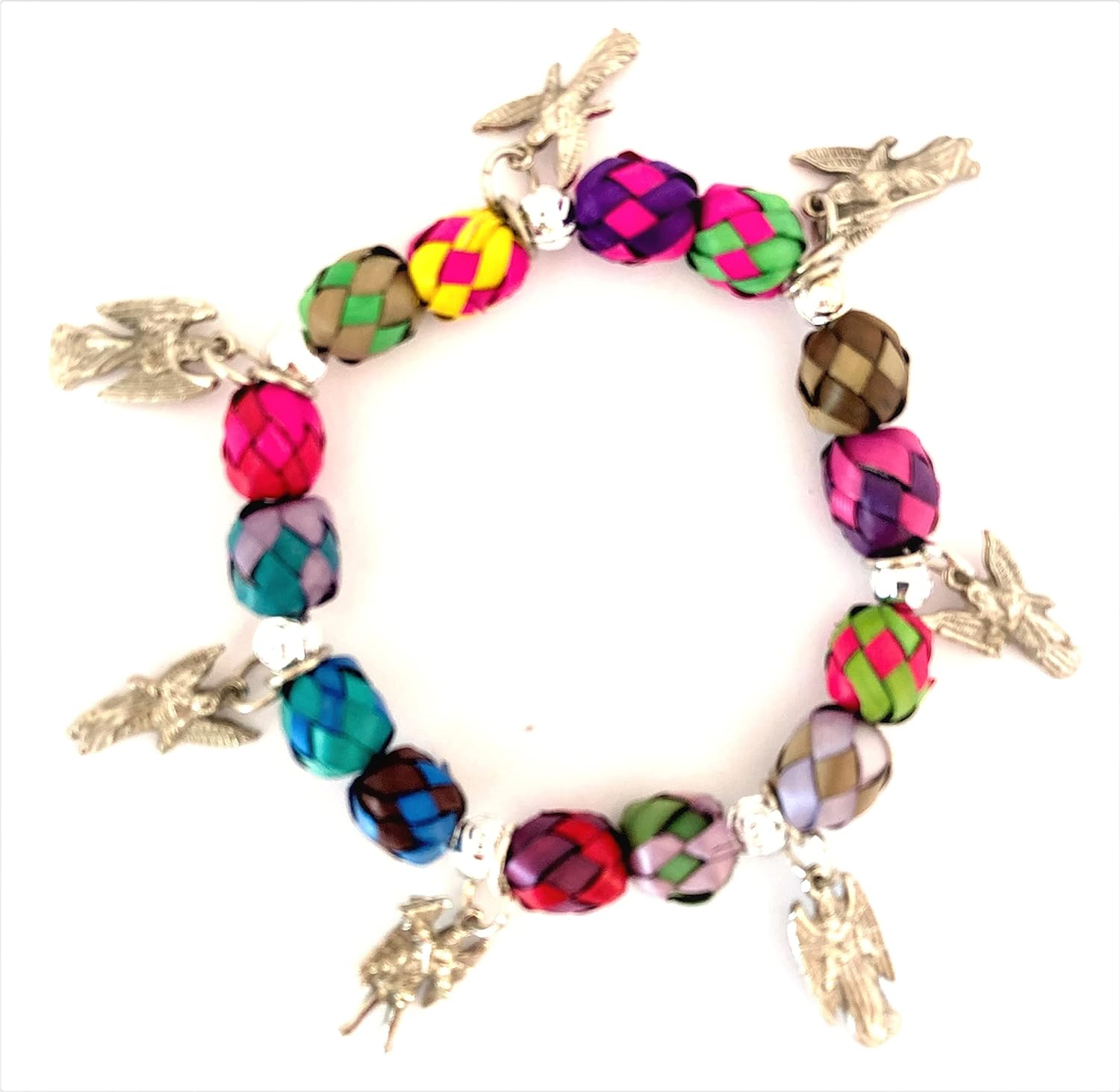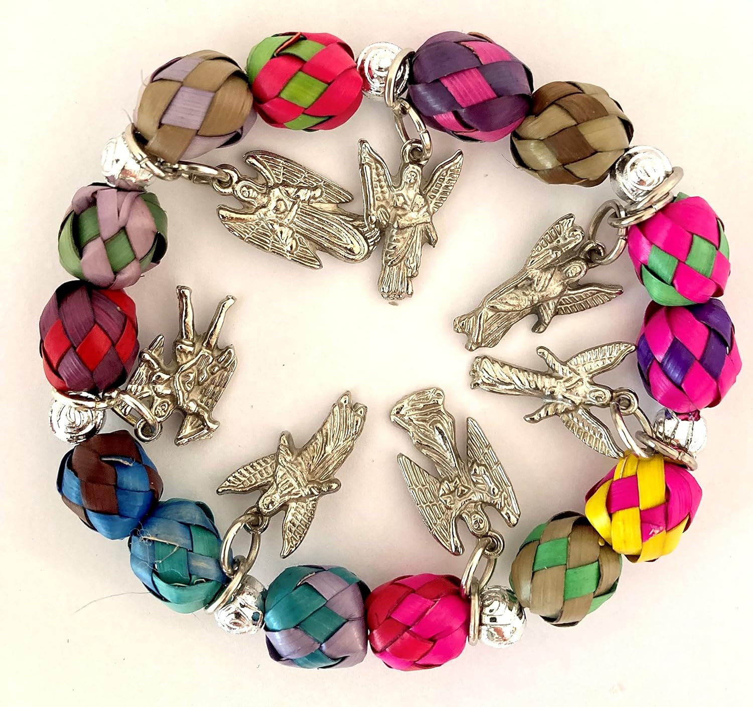 Set De Pulsera, Aretes Y Llavero Artesanal De Palma 7 Arcangeles