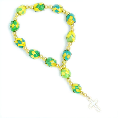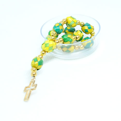 Decenario hecho a mano con Cruz en colores verdes y amarillos. INCLUYE: Bolsa de organza para conservarles en excelente estado o para dar un regalo más que perfecto y especial.
