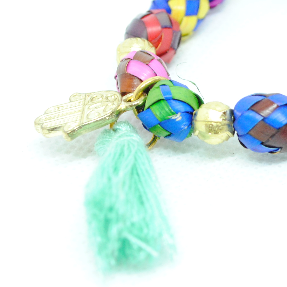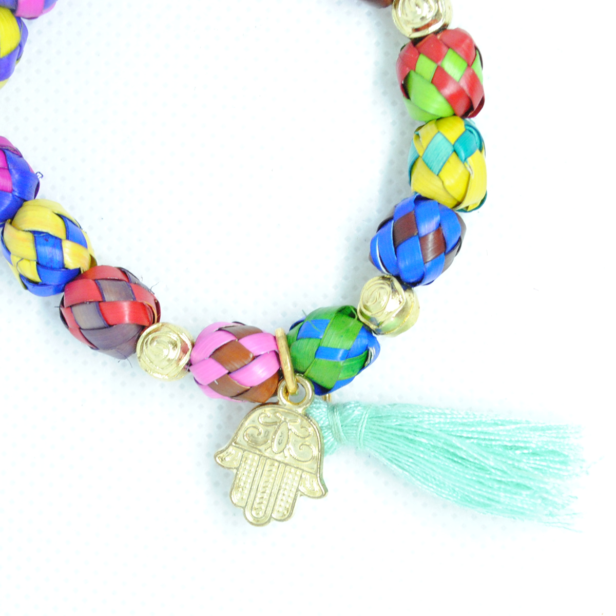 Pulsera de cuentas de palma con Dije de mano de hamsa y chaquirón.