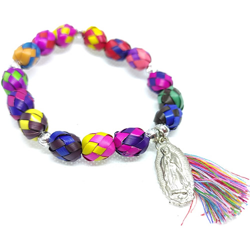 Hermosa pulsera artesanal del palma, hecha a mano con palma en varios colores, con dije de Virgen de Guadalupe en Nikel y chaquirón. *El color del chaquirón puede variar. INCLUYE: Bolsa de organza para conservarlo en excelente estado o para dar un regalo más que perfecto y especial.